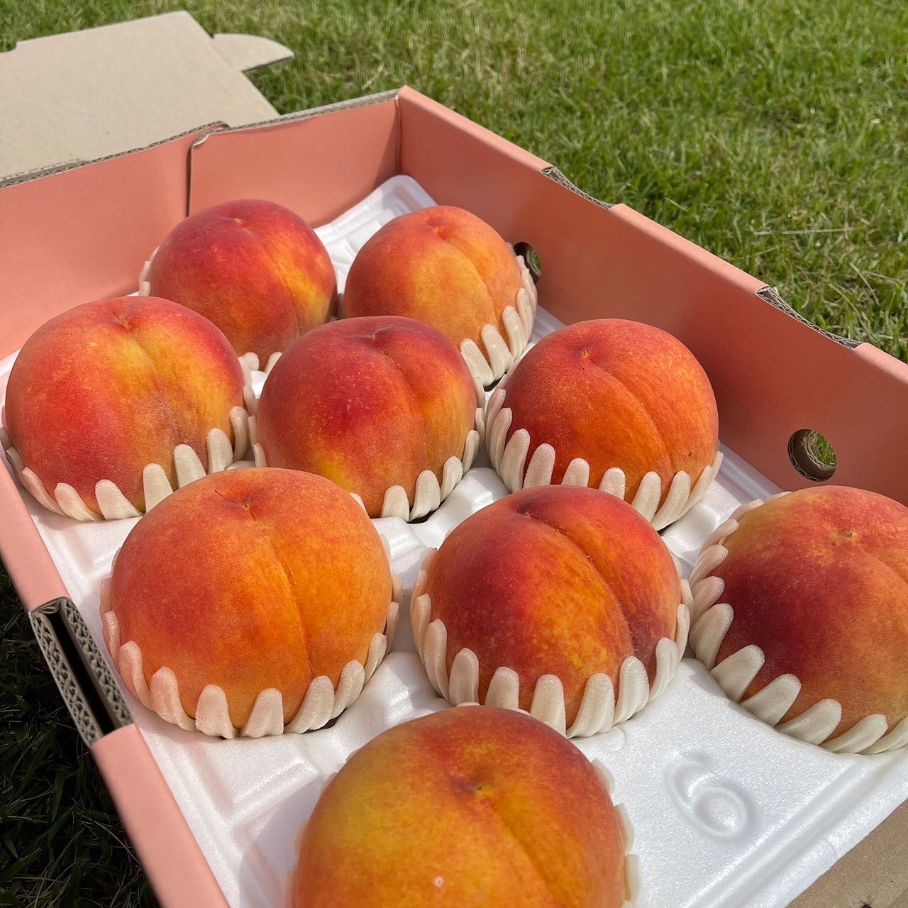 복숭아 한알한알 개별로 완충제를 감싸 전용 캡에 넣고