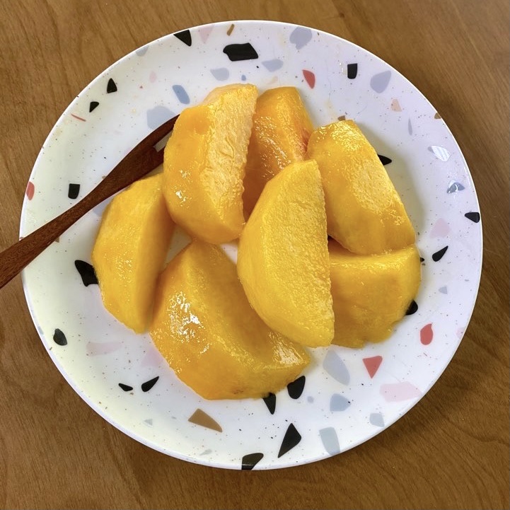 후숙이 완전히 되면 껍질을 벗겨 먹는 부드러운 반말랑이복숭아입니다.